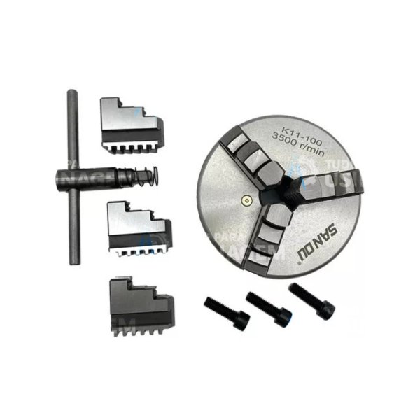 Construída em ferro fundido de alta resistência, com castanhas em aço temperado e retificado, garante robustez, precisão e longa vida útil, mesmo em ambientes industriais de alta demanda. O sistema autocentrante movimenta simultaneamente as três castanhas, centralizando a peça com rapidez e confiabilidade, reduzindo tempo de setup e aumentando a produtividade.